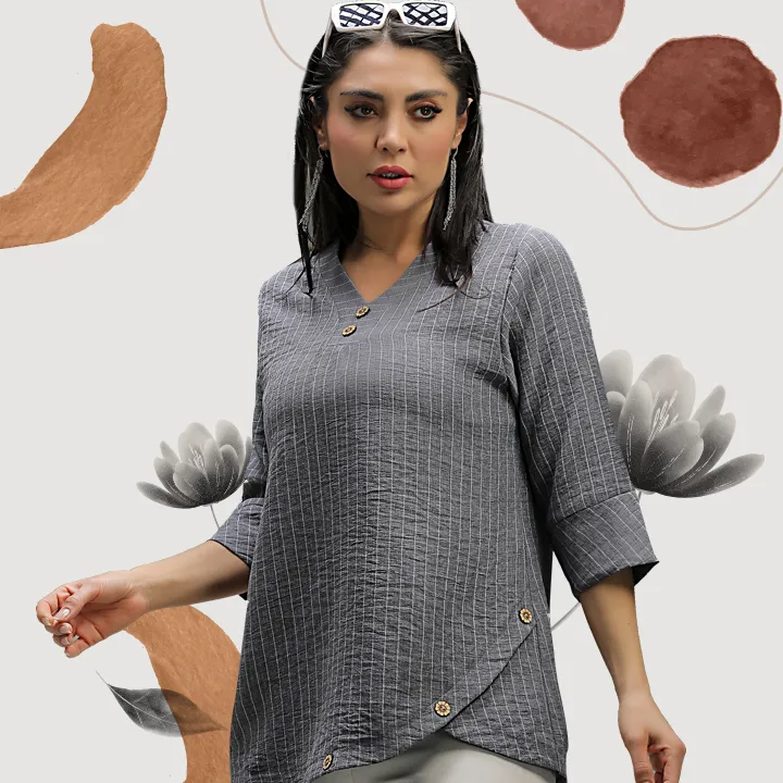 شومیز زنانه B&B سرشانه افتاده راه راه